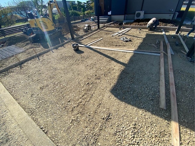 鋤取り整地、土間枠打ち。 -
