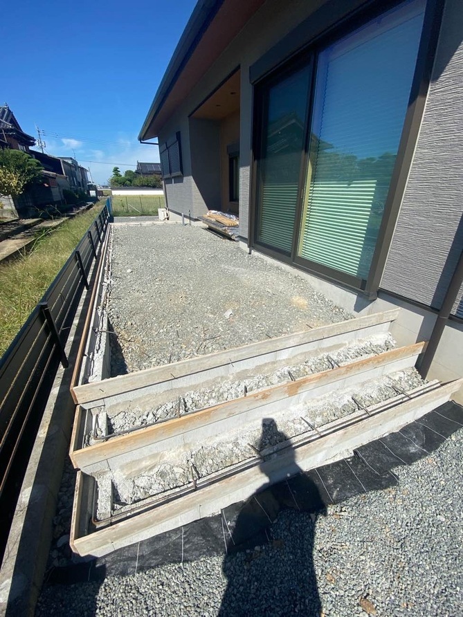 アプローチは最後にタイルを施工し完了。 -