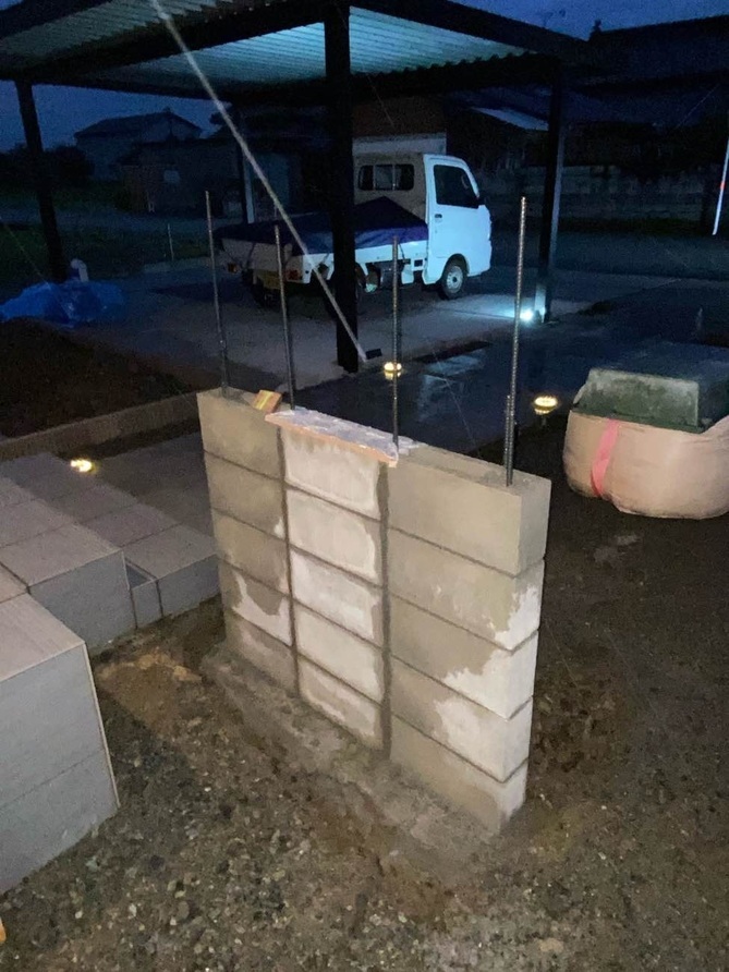門柱造作中。 -
