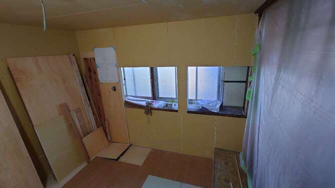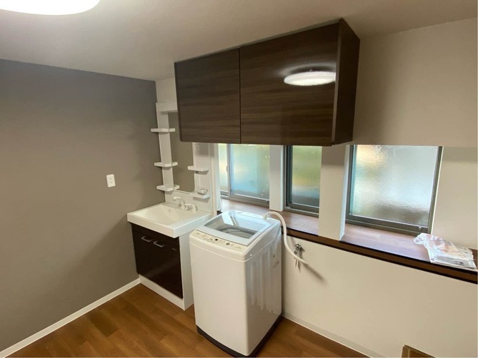 浴室を解体し、ユニットバス設置、サッシ交換、脱衣所の造作を行いました。また、洗面台・洗濯機スペースも壁を造作後、クロス張替え、新規洗面台・吊戸の設置、サッシ交換を行い生まれ変わりました。